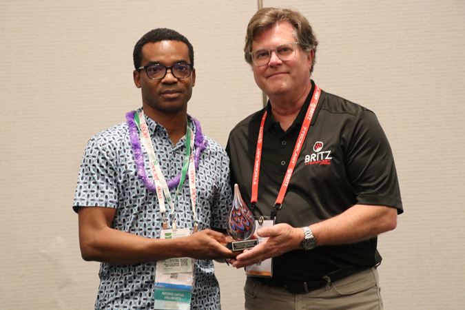 Larry Shelton presents William R. Britz with Memorial Award in honor of William E. Britz
