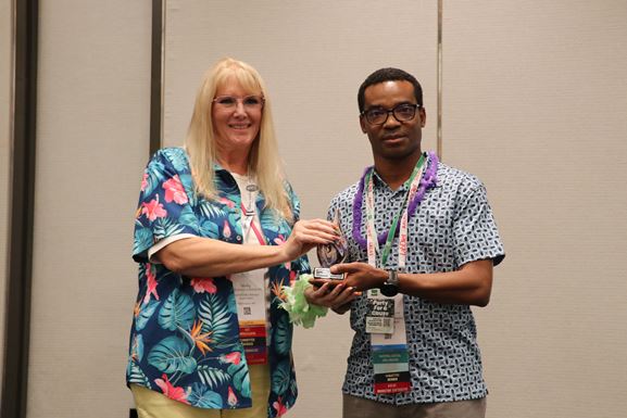 Molly Romick accepts the Memorial Award from Larry Shelton in honor of Bob Banks