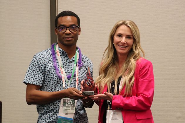 Larry Shelton presents Megan LeCornu the Memorial Award in honor of Julia Granowski